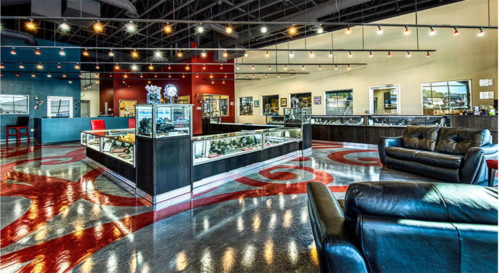 OWNER JENNIFER FARNES designed her whole store, Revolution Jewelry Works in Colorado Springs, CO, from color selection, layout and artwork to lighting and the floor plan. The design fused wood and metal for an industrial look, and she worked with a local cabinet maker to create showcases, work booths and displays using Colorado reclaimed woods.