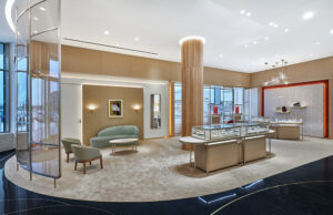 Today, a serpentine glass façade hypnotizes guests to the two-story light-filled space overflowing with high design, custom everything, and 20,900 square feet of pure luxury. No wonder it is nicknamed ‘The Mansion,’ as it is nothing short of gasp-inducing awe and delight from the moment you lay eyes on the facade to the time you examine the jewelry and watch treasures within. Bonus: The Mansion also houses Rolex and Chanel shop-in-shops, and boutiques from Tudor, Omega and Cartier (which the French house calls an Espace).