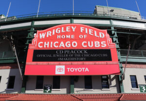 3. CUBS PARTNER. CD Peacock is the Official Jewelry & Watch Partner of the Chicago Cubs and Wrigley Field. The arrangement gives the store naming rights to Wrigley Field’s Premier Entrance and is the official sponsor of the trophy room inside the ballpark that houses the 2016 World Series Championship trophy. CD Peacock also sponsors The CD Peacock Chicago Cubs Player of the Month Award, where the winning player receives an inscribed watch from the brand on the field before the home crowd.