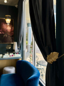 Inside, the atmosphere is of a sophisticated, moody elegance. Deep teal walls are punctuated by gold accents and dramatic lighting that support and highlight the museum-style cases. Unlike traditional jewelry stores with high, barrier-like counters, Rox utilizes low pedestal displays to make the shopping experience interactive.