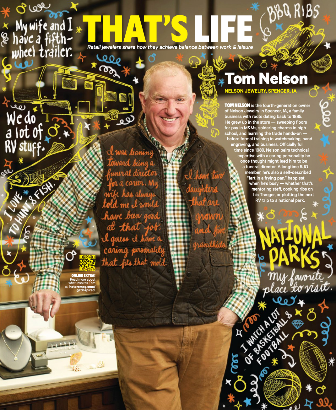 Tom Nelson is the fourth-generation owner of Nelson Jewelry in Spencer, IA, a family business with roots dating back to 1885. He grew up in the store — sweeping floors for pay in M&Ms, soldering charms in high school, and learning the trade hands-on — before formal training in watchmaking, hand engraving, and business. Officially full time since 1989, Nelson pairs technical expertise with a caring personality he once thought might lead him to be a funeral director. A longtime RJO member, he’s also a self-described “fart in a frying pan,” happiest when he’s busy — whether that’s mentoring staff, cooking ribs on his Traeger, or plotting the next RV trip to a national park.