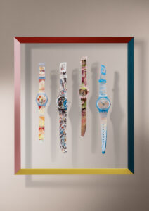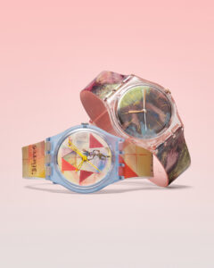 According to Vivian Stauffer, who joined the brand in 2025 and helped shepherd the project to completion (it was underway for months before his tenure at the brand began, “It’s not easy when you have a big peace of of art, to reduce it to keep the spirit and essence of the art piece within in something that is quite limited in terms of surface. We can’t just reduce it.” Swatch worked closely with the Guggenheim to select works from its collections for the watches and to finalize their designs.