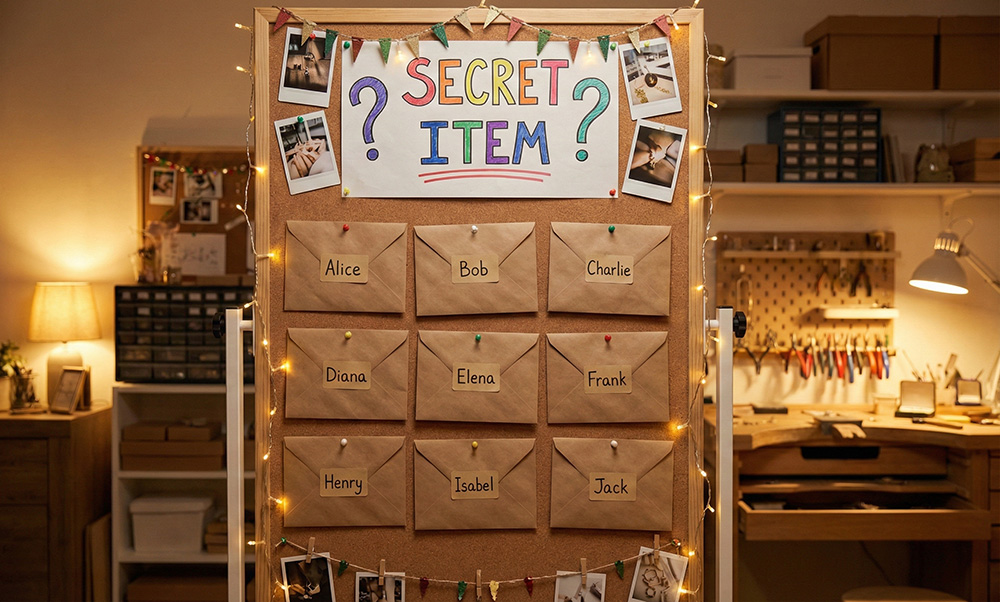 Now your staff each draws an envelope. But — and this is the important part — they don’t open it. They hand it right back to you. You tape it to a board in the backroom with their name on it.